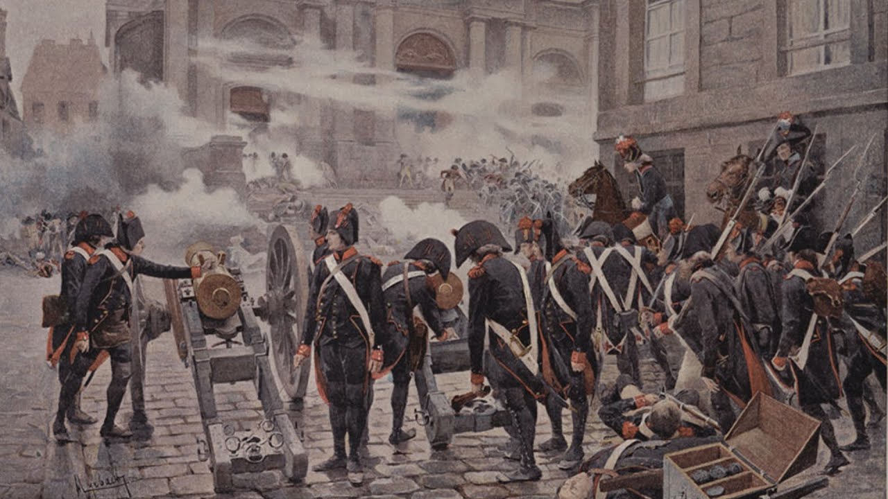 Lenže boju proti reakčným živlom sa nevyhol. Monarchisti v Paríži sa 13. vendémiairia (mesiaca vinobrania) vzbúrili proti republike. Napoleon prevzal velenie obrany proti kontrarevolúcii. Okamžite poveril mladého dôstojníka kavalérie Joachima Murata (svojho neskoršieho švagra), aby zo zbrojnice v Sablons zabezpečil delá. Následne „prúdom kartáčovej paľby“ vyčistil ulice od podvratných živlov a zachránil revolúciu.