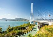 Prvým v rade je ostrov Mukaishima, kde dorazí trajekt z Onomichi. Cesta trajektom trvá neuveriteľných 5 minút a stojí pár jenov. Domáci to používajú ako MHD-čku, keď idete bez bicykla, stojí to trošku menej. Na Mukaishime vystúpite z loďky do malej lodnej “stanice,” kde je toaleta a zopár automatov na nápoje, ktoré sú inak v Japonsku všade a každý, kto nie je úplne slepý, si všimne, že asfaltkou sa začína tiahnuť hrubá modrá čiara, ktorá označuje oficiálnu trasu Shimanami Kaido a oznámi vám, že Imabari je vzdialené 75 km. Ono sa na ostrovoch ani nie je veľmi kde stratiť, prinajhoršom sa vrátite naspäť. Aj my sme sa zopárkrát stratili, lebo tým, že sme mali čas, sme sa chceli pomotať po ostrovoch a vidieť niečo aj mimo oficiálnej trasy.