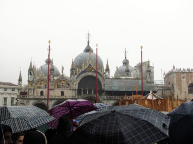 Na predstavenie masiek sa prišlo pozrieť toľko ľudí, že keby sa pár samovražedných atentátnikov v maskách strategicky rozmiestnilo, tak tam urobia takú spúšť, že by na najbližších 100 rokov zakázali masky v celej Európe. V podstate sa nič nedalo vidieť kvôli dáždnikom, na pódiu kecali po taliansky a ja som začal cítiť, že mi premoká pravá topánka. Tak sme sa pobrali pozrieť si niečo, kde budeme mať aspoň strechu nad hlavou - Dóžov palác.