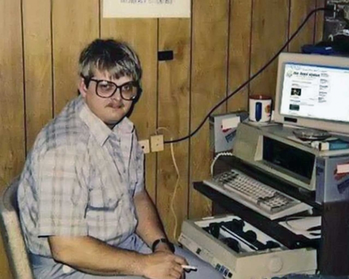Zavedie vás do miestnosti s jednou stoličkou. Druhá je polámaná. Ponúkne vás miestom - odloží si veci z tej polámanej stoličky. Najprv, že si nesadnete, veď chyba je triviálna, treba vymeniť len dajakú súčiastku. On si zoberie na starosť váš stroj a vy sa obzriete okolo seba. Miestnosť by bola aj pomerne veľká, keby existoval centimeter štvorcový, ktorý by nebol obsadený. Miestnosti dominuje zapnutý počítač s obrovskou obrazovkou (24-26 palcov), kde má pustenú dajakú strašnú hudbu z internet rádia. Neviete sa rozhodnúť, či ide hardcore techno, darkwave alebo indie trance, poprípade zmes toho celého. Počítač má zásadne bez bočných stien, aby videl, že sa krútia všetky ventilátory. Má ich tam asi šesť a tými vykuruje miestnosť. Okrem tohto počítača je tam ďalších osem, ktoré mu zverili obete podobné vám. Sú len tak rozložené po miestnosti - na stole, na zemi, na polici. Po celej miestnosti má rozhádzané dvojlitrové fľaše od koly, poháre od kávy z automatu poprípade šesť hrnčekov so zaschnutým čajom a štyri s pripraveným, kde sa cely čas vymáča čaj a obsahom kofeínu pripomína intravenálnu kofeínovú injekciu.