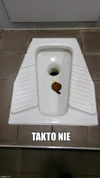 Ešte pred zatlačením odporúčam uistiť sa, že máme ritný otvor priamo nad dierou v zemi. Inak môžu nastať komplikácie ako na titulnom obrázku. Samotný proces tlačenia je rovnaký ako na našich záchodoch, takže sa môžeme posunúť k ďalšiemu bodu.