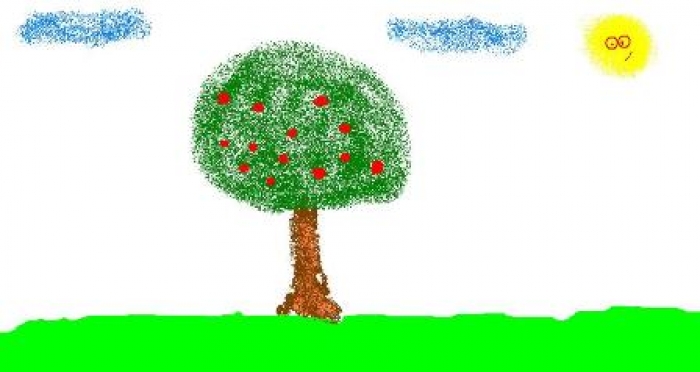 Na tomto strome si niekto dal veľmi záležať a namaľoval ho vodovkami. Znepokojujúce sú červené línie na kmeni stromu. Tento jedinec má zjavne samodeštruktívne sklony, ktoré sa môžu prejavovať napríklad nadmerným pitím alkoholu, fyzickým samopoškodzovaním alebo sledovaním Modrého z neba. To vlastne indikuje aj estetická kvalita tejto kresby, ako je známe aj z histórie, veľa umelecky nadaných ľudí trpelo závislosťami, depresiami a rôznymi viac či menej neškodnými úchylkami. Väčšinou ale končia tragicky, takže je mi tohto človeka už vopred ľúto.