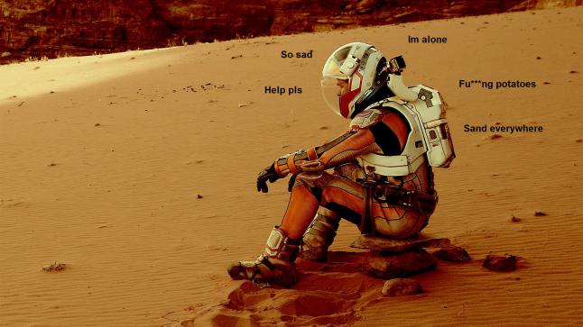 Neviem, vraví sa, že do tej istej rieky dvakrát nevstúpiš. Ja som vstúpil už tretíkrát a zase som sa zmočil. Dávnejšie ma v kine zabila absolútne nudná a nezáživná Gravitácia (2013), potom prišiel (že vraj) najlepší film o vesmíre Interšpár (2015) s "úžasnou" preorganovanou hudbou v pozadí, ale nie o nich som chcel. Najnovšie sa téme odľudštenia na inej planéte venuje filmové spracovanie knižného beceleru Marťan. Ani som na to veľmi nechcel ísť, ale vravím si, že tomu dám šancu, predsa len, kino možno umocní zážitok, samé známe mená vo filme, aj Mars ako planéta celkom ujde. Témička síce ohraná, ale bol som zvedavý, či sa dá nejak originálne spracovať. Ono nebol to úplný prepadák a väčšina ľudí si na tom rozhodne pohoní (mnohí už honia, napr. na csfd), no film by som skôr označil ako zápaďák, čo vysvetlím nižšie.