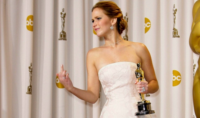 Cenu za najlepšiu ženskú hlavnú úlohu získala Jennifer Lawrence za film Silver Linings Playbook. To som vcelku rád, lebo mi je stále sympatickejšia a už som jej odpustil aj úlohu Whiskas v Hrách o nudu... Ani neviem, čím na mňa tak pozitívne pôsobí, možno tým, že má len 22 a ešte zrejme nie je skazená tým diabolským a nemravným prostredím Hollywoodu alebo skôr tým, ako strašne má túto šaškáreň fpiči. Tu napríklad odpovedá nejakej americkej Judínyovej na otázku o svojej oscarovej róbe: