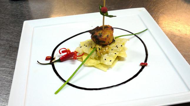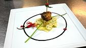 Dizajn je kľúčové slovo modernej doby, a to platí aj pri jedle. Nikoho v podstate nezaujíma, ako jedlo chutí, hlavne musí dobre vyzerať. Keď máte doma ešte normálne biele taniere kruhového tvaru, tak ich okamžite choďte vyhodiť, ale tak, aby vás nikto nevidel. A bežte si kúpiť taniere týchto tvarov: štvorec, obdĺžnik, kosoštvorec, lichobežník, trojuholník, ovál, osemuholník alebo trapezoid. Farba má evokovať jedlo čo najmenej, čiže ideálne čierna, modrá alebo tyrkysová. A najdôležitejšia vec: veľkosť! Tanier musí byť čo najväčší a najťažší, tak aby sa s dizajnom jedla na ňom pohodlne pracovalo. Ak si nie ste istí, urobte si skrinkový test. Dajte taniere do skrinky nad linkou a keď sa vám podarí zavrieť dvierka, tak ste kúpili zle a potrebujete väčšie. Napriek tomu, že máme tanier, na ktorý by sa zmestila denná stravovacia jednotka Traubnera s Golonkom, dávame naň minimum jedla a ukladáme ho zásadne vertikálne na seba. Zvyšok priestoru si ponecháme na ozdobu - vetvičku bylinky, jednu vňaťku pažítky a najmä to najdôležitejšie – bariéru z 10 až 17 kvapiek balzamikovej redukcie (viď. titulný obrázok).