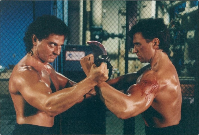 A ešte úryvok označený ako „best fight scene ever“. Ťažko objektívne posúdiť, ale má to niečo do seba. V prvom rade hlavný záporák je naozaj diabolský, lebo má vypúlené oči, na hlave mastnú bundesligu a rád olizuje čepele nožov. Navyše ho musia márovať až dvaja – policajt, ktorý sa tvári stále rovnako drsne, aj keď mu päsť bundesligy láme čeľusť a Rothrocková (ktorá má ale zlomenú ruku, takže je len za pol chlapa). A je to naozaj poézia v pohybe, ktorú narúšajú iba podivné zvuky úderov, ale vtedy boli asi štandardné – aj keď by ma zaujímalo, ktorému majstrovi zvuku napadlo, že takýto zvuk vydáva časť ľudského tela, keď dopadá na inú časť ľudského tela.