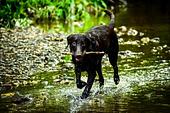 Ale ten trochu bolestivý pád a následný človečí jačot psicu dekonšternoval. Ublížene zaskučala a nemotorne sa vyšplhala naspäť na súš. Evidentne ju najviac srdilo, že sa ani nenapila. Človečica č.2 emotívne zvukovo výrazne prejavovala spoluúčasť a navrhla návrat na bezpečnejšiu lesnú príbrežnú cestičku.