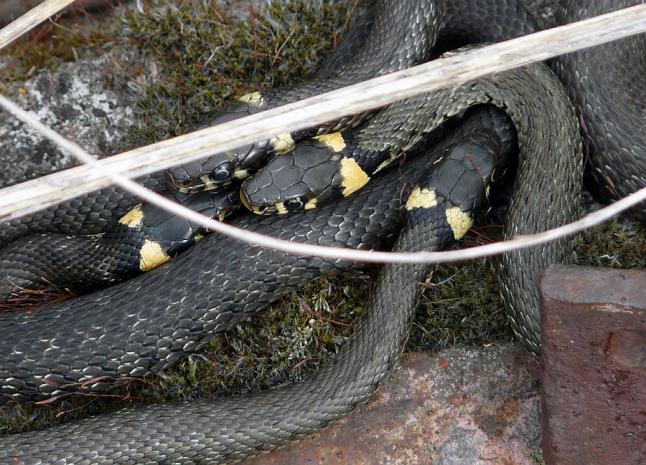 Náš najbežnejší had, vidieť ho môžete v lese, pri vode, vo vode. Je rýchla, pri najmenšom vyrušení okamžite zmizne. Dobre a rada pláva, malé užovky sa rady kŕmia žubrienkami. Oblieka sa do 50 odtieňov sivej, niekedy aj svetlohnedej, za ušami má dva žlté polmesiačiky. Pre človeka, ktorý je ochotný pripustiť existenciu viacerých druhov hadov, je v podstate nezameniteľná. Občas sa dajú na mieste, ktoré užovky obojkové považujú za zvlášť príjemné na vyhrievanie, vidieť pokope aj desiatky kusov najrôznejších veľkostí. Raz som sa takto priblížil k starému panelu pokrytému užovkami. Samozrejme, že sa všetky okamžite odplazili preč. Postavil som sa na panel a nehybne som sa pozeral po okolí, či niekde ešte nejaké neuvidím. O minútku prišla späť na panel prvá, hneď za ňou ďalšia a takto sa postupne vrátili všetky a krásne sa mi naskladali k nohám (Titulná fotka je maličký výrez z tejto pokojnej demonštrácie). Celkom zvláštny zážitok. Niektoré jedince ovládajú tanatózu, teda zahrajú mŕtveho. Keď zahrá mŕtveho pes, alebo vidíte akože krívajúcu srnku, ktorá vás odvádza od mláďaťa alebo kačku ťahajúcu za sebou krídlo, ktorej sa zázračne uľaví, keď ste ďalej od jej káčatiek, tak je to pre mňa ľahšie pochopiteľné, ako keď chytíte hada, ktorý sa trošku pokrúti a vzápätí úplne ochabne, roztvorí papuľu a vyvalí jazyk nabok. V tom momente predátor zvyčajne ostane prekvapený, poľaví v pozornosti a milá užovka frnk do húštiny. Sranda je, že niektoré kusy to robia, iné nie. Inak je užovka obojková z tých smradľavých hadov a verte mi, že to kurva smrdí. Môžete jej aj do chvosta zahryznúť, nezaútočí na vás.