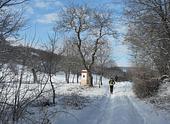 Ráno je pár stupňov pod nulou a zdá sa, že trochu snehu bude až hore na kopcoch. Kým čakáme na štart, bratovi pes nejakého dogtrekkera oští nohu. Berieme to ako dobré znamenie, smejeme sa všetci okrem neho. Trasa začína stúpaním a pokračuje ďalším stúpaním, s krátkymi rovnejšími úsekmi. Pod nohami máme sneh. Hnusný, studený biely prašan, ktorý uteká pod nohami. Zatiaľ je ho málo, ale veľmi zle sa mi na ňom beží. Ak je terén čo i len trochu dolu kopcom, ide to. Ale po rovine alebo nebodaj do kopca musí členok robiť milón drobných vyrovnávacích pohybov, a to mi nevyhovuje, prepínam do rýchlej chôdze. Na oblohu sa derie slnko a ja začínam rozmýšľať, ako sa pôjde po topiacom sa snehu a že onedlho asi budem musieť zhodiť jednu vrstvu. Prichádzam k prvému štálu a kochám sa. Vyhrať to aj tak nejdem a staré ovocné sady mnou vždy vedia pohnúť. Nechám súperov, nech bežia, ja si urobím pár fotiek a poberiem sa za nimi.