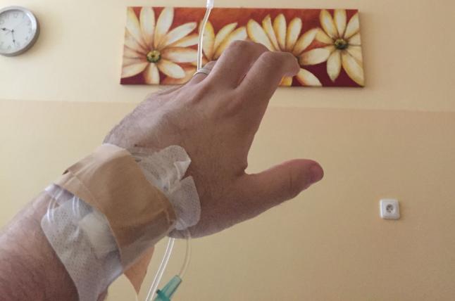Do nemocnice ma po predchádzajúcej dohode prijali v stredu. Zobrali mi hneď krv (neodpadol som) urobili hala-bala EKG, ktoré z dôvodu mojej chlpatej brucho-hrude a preto odliepajúcich sa prísaviek malo rovnakú výpovednú hodnotu ako telefonické prieskumy o bambusových ponožkách. Predanesteziologické vyšetrenie zbehlo rovnako ako voda. Poobede mi pre istotu brali krv druhýkrát (neodpadol som), pretože niekto zabudol niečo zaškrtnúť. Ale bolo dobre. Televízny prijímač na izbe mi pomohol vysporiadať sa s nemožnosťou jesť a piť.