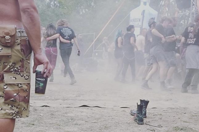 Program je už od štvrtka obeda, tak si v stredu niečo nadrobím a vo štvrtok doobeda vyrážam rozložiť tábor. Niekedy okolo obeda som na mieste. Ako bolo avizované, dovnútra nikoho s vlastným chlastom nepustia a ochranka to berie pomerne vážne. Čiže pre mnohých to znamená, že sa pred bránou musia narýchlo popasovať so zvyškami zásob, ktoré vstrebávali už od rána vo vlaku. Cesta do areálu je každoročne lemovaná padlými pankáčmi, toho roku ich bude ešte o niečo viac.