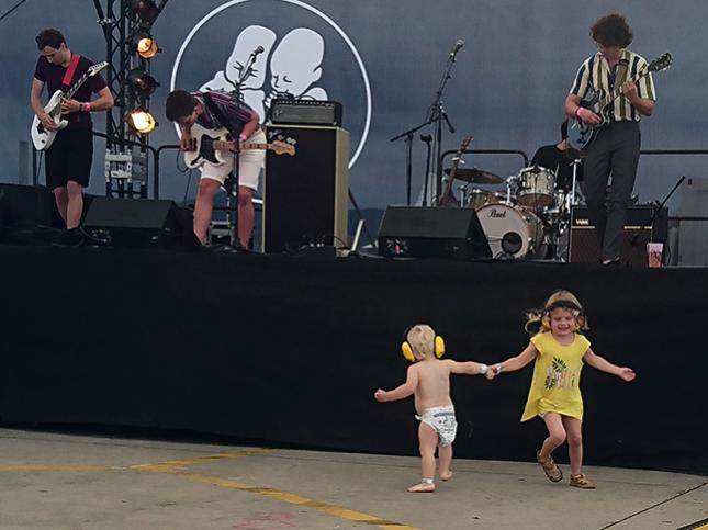 Areál je samozrejme úplne iný ako bežne. Hlavné pódium a po stranách dve menšie klubové, jedno väčšie UFO a vedľa neho dve menšie UFá. Všetko vtesnané na priestore letištnej stojánky, ktorej väčšia časť na veľkých Pohodách je hľadiskom hlavného stageu. Pár stánkov, hangár pre neziskovky, stan debatný, na boku malé pódium s električkou a to je všecko. A tých tisíc ludí vytvára trochu dojem prázdna. Teda v porovnaní s tým na čo býva človek na letisku zvyknutý.