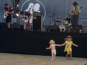 Altin GÜN na hlavnom pódiu. A prekvapili. Na prvý aj druhý kuk by to bolo zasa niečo čo v prvom rade chce vyzerať. A nanešťastie ako dalmatínska diskotéka z roku 1987. Speváčka čo sa počas koncertu prezlečie z červeného koženkového kabátika do leopardieho topu a ten capkal na bonga vypadá ako keby už tridsať rokov hral v lacných pornofilmoch iba za zásluhy. Plus celý zvuk je zefektovaný štýlom ako keby ustupujúca britská armáda od Gallipoli v chvate zabudla Leslie bedňu so zadrhnutým rotorom a domorodcom sa ten kolísavý zvuk z nepochopitelných príčin zaľúbil. Proste jeden nekonečný pulzar. Ale pod tým všetkým je hudba. Dobrá hudba. A funguje to. Mišo, takéto bizáry môžem.