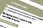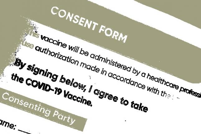 Vyliezli sme znova na chodbu a podľa inštrukcií sme kráčali po nej vpred. Drahá si urobila ešte krátku zastávku, keď si odskočila a odovzdala moč, nakoľko lekár si chcel byť istý u všetkých slečien, dám a beštií, že nie sú tehotné. Ako sa neskôr Drahá priznala, predtým ako vliezla na wc, tak sa preventívne uistila že má fakt vypnutú kameru a je na "mute". Kým na chodbe sa snažil postarší pán neúspešne vyjednávať s personálom, že jeho vyšší tlak je ok a nechce byť z procesu vyradený, nás vzápätí vtiahli do ďalšej ordinácie, kde sedel jeden z lekárov. Prebehol krátky pokec o tom, ako sa cítime a či sme "excited". Excited som bol možno ráno, ale po 7 hodinách som sa cítil unavene a hladne. Lekár sa ospravedlnil so slovami, že od septembra riešili iba vybrané prioritné skupiny a bežnú populáciu ešte neplánovali spracovávať. Online objednávanie pre všetkých začne teda fungovať až o pár dní. Žiaľ, dozvedeli sa o rozšírení pre verejnosť len pred tromi dňami a tak riešia organizáciu za pochodu. Dúfa, že keď prídeme o tri týždne, už to bude bez čakania, s príchodom na presný čas rovno na recepciu. Som zvedavý, či to táto krajina zvládne,.. I keď asi to neovplyvním. Podpísal som súhlas so všetkým a podstrčil rovnaký papier na podpis Drahej. Lekár mi (teda akože “nám” -keby zombie vnímala okolitý svet) v rámci krátkej konverzácie ozrejmil, že ak sa prejaví ľahká alergická reakcia, máme ju ignorovať. Ak by ale bola serióznejšia alebo nebodaj silná, určite máme dať okamžite vedieť. Drahá že nesmie nasledujúce 3 mesiace otehotnieť, potom už je to úplne v poriadku. Na to sa mierne priklonil ku mne cez stôl, za ktorým sedel a spiklenecky mi šepol: “Tak si dávaj pozor!“
