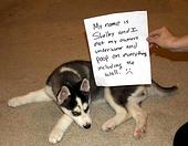 Od tohto útleho veku odmietala aportovať. Naháňanie loptičky a vôbec, celú tú činnosť vykonávanú na základe pokynu „Dones!“ považuje dodnes za trápnu a ponižujúcu. Za jedinú aktivitu blížiacu sa hre možno v jej podaní považovať naťahovanie sa o kus zauzleného lana. Alebo použiť za týmto účelom hračku predĺženého tvaru, ktorú je ľahké uchopiť do zubov a myksľovať celým človekom. Ako drobný štvornohec jasne preferovala deštrukčný princíp – roztrhať, prehrýzť. Toto ničiteľstvo jej vynieslo ročný pobyt v klietke. Počas neprítomnosti ľudskej posádky v byte bola celý deň zavretá v klietke. Pre útlocitných, klietka bola plne vybavená vankúšikmi, hračkami a žižlákmi a bola tak veľká, že sa do nej pohodlne zmestil dospelý človek. Tento trestný pobyt jej priniesli prečiny typu prehryznutie tv kábla, zničenie sady nohavičiek od Victoria Secret, ktoré vytiahla z koša na pranie a rozžula. Ale najviac sa na rozsudku podpísala totálna likvidácia mojich gumákov na venčenie.