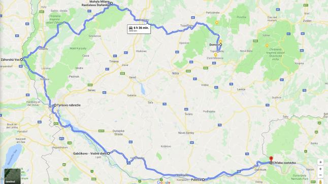 Vyrážam teda a smerujem z obce Hostie na Topoľčianky, Skýcov a ďalej na Solčany a vymetám ponitrianske dediny smerom na Piešťany, Vrbové a Brezovú pod Bradlom a stúpam k Mohyle Generála Milana Rastislava Štefánika. Toto miesto navštevujem po prvý raz a okamžite na mňa robí veľký dojem. Monumentálne dielo architektka Dušana Jurkoviča je vidieť už zďaleka a dominuje krajine. Je veľmi dobre prístupné peknou asfaltkou. Zaparkujete pár sto metrov od mohyly. Keď som sa pokochal nastavujem do navigácie Waze ďalší cieľ. Záhorskú Ves, ako najzápadnejšiu obec Slovenska. Cestou prechádzam Záhorskou alebo aj podľa množstva borovíc, Borskou nížinou a zastavujem na krásnom rovnom úseku cesty v borovicovom lese bez akejkoľvek premávky a robím pár fotiek. Asi po hodine cesty prichádzam do Záhorskej Vsi, parkujem neďaleko kompy cez rieku Morava a idem spraviť pár fotografií aj spomenutej kompy. Inak na prvý pohľad nevidím nič zaujímavé. Vybehnem ale ešte na hrádzu a nachádzam poklad! Pár desiatok metrov odo mňa stojí železobetónový bunker z obdobia konca prvej Československej republiky, ktorý bol súčasťou obranného opevnenia pred nacistickou hrozbou, ktoré však bolo po Mníchovskej zrade opustené bez boja... O pár stoviek metrov medzi stromami v záplavovej zóne pod hrádzou leží ďalší bunker. V nestabilnom, časťou zaplavovanom území sa vlastnou váhou nakláňa na stranu, avšak držiac neohrozene pokope bez jedinej praskliny. Interiér oboch stavieb som neskúmal. Bol čas pohnúť sa ďalej a dostať sa do najväčšieho a zároveň hlavného mesta republiky, do Bratislavy. Keďže na aute nemám diaľničnú známku a princíp výletu bol vidieť čo najviac krajiny, tak som ju ani nechcel kupovať, pokračoval som smerom na Stupavu a ďalej do Bratislavy cez krásne záhorské obce. V hlavnom meste som zaparkoval na parkovisku na Tyršovom nábreží, vyšiel na Starý most prešiel som sa po jednej strane k Univerzite Komenského a druhou stranou mosta som sa vrátil k autu. Cestou som urobil pár momentiek notoricky známych panorám a pokračoval som ďalej smerom na juhovýchod nekonečne rovnou cestou pozdĺž hrádze Gabčíkovskej vodnej zdrže až k plavebným komorám ktoré sú čerešničkou na torte Vodného diela Gabčíkovo. Jedna z nich je momentálne v rekonštrukcii a tak sa mi naskytol dych berúci pohľad do obrovského prázdneho priestoru. Potešilo ma, že na oboch koncoch priehrady sú pekné parkoviská so sedeniami a pod riadiacou vežou plavebných komôr je rozhľadňa prístupná verejnosti, odkiaľ máte vodné dielo ako na dlani. Keďže čas neúprosne bežal, musel som sa pobrať ďalej. Cieľom bola obec Patince, ako najjužnejšia na Slovensku. Cestou som v Komárne doplnil nádrž. V Patinciach toho nič moc k videniu nebolo. Ide o ospalú malú obec. Jedinú aktivitu, ktorú som registroval bol malý stánok s melónmi vedľa hlavnej cesty. Urobil som teda zopár fotiek na pamiatku a vybral som sa na miesto kde som mal prečkať noc. Ak by som mal posúdiť krajinu ktorú som cestou videl, tak by som ju zhodnotil kladne. Páčilo sa mi najmä Záhorie a jeho borovicové lesy. Cesty boli v celku OK. Našli sa aj horšie úseky, ale väčšinou to nebolo vôbec zlé. Zastavil som pri obci Chľaba, kúsok od miesta, kde Dunaj opúšťa Slovensko. Do týchto končín chodím veľmi rád. Je tu najmenšie pohorie Slovenska, Kováčovské kopce, s prekvapivo peknou prírodou a hustými lesmi na veľmi malej ploche a zaujímavé skalné útvary, ktoré sa týčia pomerne vysoko nad rieku Dunaj. Vedie tadiaľto dôležitá železničná trať a podzemie pohoria je plné vyhĺbených priestorov, ktoré vybudoval nemecký Wehrmacht s nejasným účelom (viac info Čierne Diery). Našiel som si relatívne tiché miesto pri brehu Dunaja. Dal som si večeru, vykonal večernú hygienu a kochal sa západom slnka a krásne osvetlenými výletnými loďami. Bol však čas ísť spať. Na druhý deň má čakala poriadna štreka.