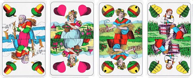 Nasleduje ďalšie kolo, v ktorom je potrebné, ba priam nevyhnutné, aby slečna prehrala. Takže si musíte namiešať karty. Slečna dostane dva rôzne žalude. Áno, žalude. Vy si dáte dve rovnaké hodnoty, vo farbe prvej otváracej karty. Slečna ide prvá, ale nemá vhodnú kartu, ani farba, ani hodnota, takže si ťahá z kôpky. Vy sa usmejete a hodíte obe deviatky. Nuž, a slečna sa zmierila s prehrou a dáva dole tričko. Samozrejme, že neochkáme a necivíme na ňu. Pochválime jej spodnú bielizeň, ponúkneme sa, že pomiešame za slečnu, nech nám následne ona dá.