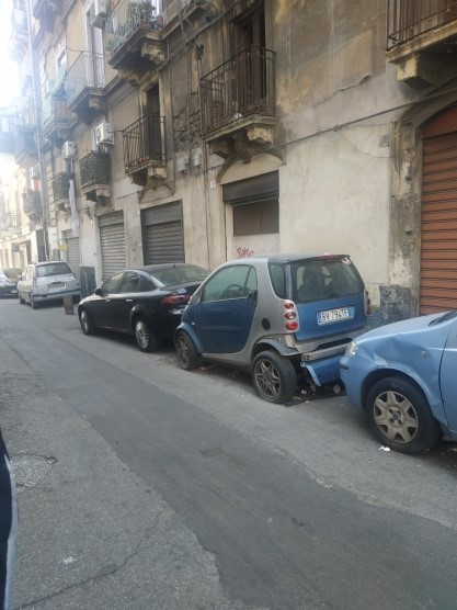 Po prílete na letisku v Katánii sme unavenými očami (leteli sme z Viedne skoro ráno a áno, pri prechode horským prechodom sme sa museli hneď po polhodine cesty pre spadnutý strom vracať inou trasou) zhodnotili, že keďže mafia nedorazila, „musíme“ využiť odvoz nášho ubytovateľa. A tak sa začala divoká jazda v spletitých uliciach Katánie s mohutnou Etnou v pozadí. Už po minúte bolo jasné, že šoféri jazdia na štýl kamikadze - smerovky buď nepoužívajú alebo im blikajú stále, samozrejmosťou je trúbenie na všetkých, čo idú okolo. Vrhanie sa do križovatiek na poslednú chvíľu bolo takým adrenalínom, že i skúsený Blavák by radšej vystúpil a plakal niekde pod stromom nad svojím osudom. Ujo šofér nám svojou sicílskou angličtinou živo opisoval miesta, okolo ktorých sme prefrčali. Nakoľko okrem beautiful a ok globálny jazyk veľmi neovládal, vehementne sme mu prikyvovali na všetko, čo vravel. Zachytili sme pár geografických názvov, a tak nás asi nechcel predať na biele mäso ani poslať na nútené práce niekam k Etne. Plní nadšenia sme pozorovali úzke katánske uličky historického centra plné áut po stranách a v duchu sa modlili, aby oproti nešlo žiadne auto. Ako sme rýchlo zistili, i dve dodávky sa veselo dokázali prestrčiť vedľa seba. Ak to bolo už príliš, šoféri si vymenili pár nadávok a šlo sa ďalej. Autám tu všeobecne nevadilo do seba ťuknúť, boli schopné sa vzájomne vyhnúť i za cenu odrazeného nárazníka, či vyjdenia až na chodník, kde prekvapilo nič netušiacich, očividne podľa zdesenia v očiach šokovaných turistov. Samotné zaparkované autá by boli na legendu. Otlčené, rozbité, s vytlčenými svetlami i bez svetiel, s vybitými oknami prelepené fóliou, bez kapoty, bez dverí...niektoré dokonca slúžili i ako náhradné kontajnery. Široká škála najväčších hviezd vrakoviska však stále zjavne bola schopná jazdy. Autá u nás dávno vyradené tu veselo fungovali ako taxíky.