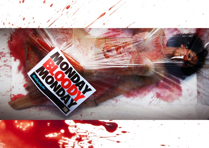 „Ježiši Kriste!“ zhrozil sa novinár pozerajúc hore. Z hákov viseli jahňacie torzá, z ktorých kvapkala krv.