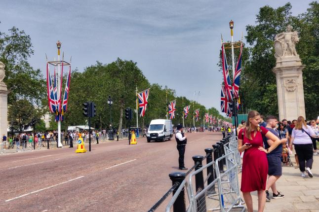 Námestie pre Buckinghamským palácom bolo uzatvorené a takisto aj The Mall a Constitution Hill, kde premával starý Karči na tom škaredom aute, ktoré by žiaden slovenský mafián nekúpil, ale britská aristokracia má čudné názory na krásu. Viď Kamilka.