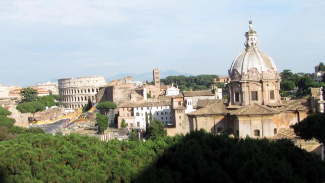 Keďže som to už raz absolvoval (síce v zime a za tmy), tak som prehovoril rodinu, aby sme vyšliapali vyššie. Najvyššie sme nešli, lebo tam sa dá len výťahom a bol zase rad ako za socíku pred mäsiarstvom. Hore sme sa pokochali výhľadom na Forum Romanum, ponaháňali čajky, ktoré pózovali v každom zábere a išli dole. Cestou som vytroloval jednu šikmookú, ktorá sa chcela vyfotiť na schodoch a ja som sa jej postavil do záberu. Podľa pohľadu fotiaceho sa mi to podarilo. Keď uvidíte fotku šikmáčky na bielych schodoch a čudne sa škeriaceho trolla s bradou, tak som to ja.