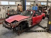 Po dokončení operácie s nádržou som ju namontoval naspäť do auta, pozakrýval všetky servisné panely z kabíny a pristúpil k ďalšiemu bodu - inštalácia rámu. Been there, done that, dokonca opakovane. Ale. Ku káblovému zväzku z roku '04 patria aj bezpečnostné pásy z roku '04. So signalizáciou zapnutia, pyrotechnickými patrónami pre prípad nárazu a tak. No a tieto pásy sú trošku väčšie ako pásy z roku '94. Presne o takú trošku, aby sa nezmestili do priestoru v karosérii z roku '94. Nevadí, aj tak tie pásy nepoužívam. Že či nebude problém keď riadiaca jednotka tie pyropatróny nenájde? Uvidime.